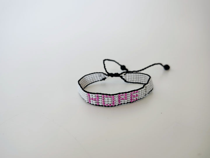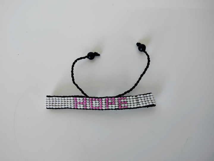 This meaningful bracelet is hand-beaded in white, with the word HOPE subtly spelled in soft pink, a delicate and powerful symbol of courage, healing, and compassion. Whether worn in honor of a loved one or as a reminder to stay strong, this bracelet carries a gentle but unshakable message: hope lives here.